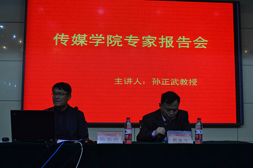 新闻学、数字媒体艺术、广告学等专业的教师、本科生、广播电视等专业的研究生近400人聆听了报告,报告会由院长马秀峰主持。
