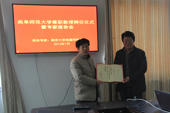 院长马秀峰教授主持,党总支书记李兴保教授为郑建明教授颁发兼职教授聘书。日照校区图书馆馆长刘显平及图书馆老师代表、足球在线直播