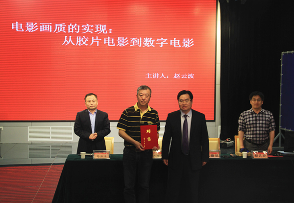 2016年5月12日下午,山东电影制片厂创作室主任、一级摄影师赵云波先生兼职教授聘任仪式暨“电影画质的实现:从胶片电影到数字电影”学术讲座在我院演播厅举行。日照校区管委会主任助理、日照校区管理办公室主任池福安出席仪式并为赵云波先生颁发兼职教授聘书。聘任仪式由足球在线直播