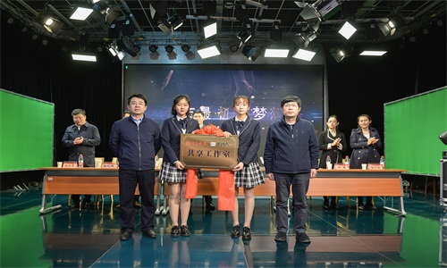 演播厅举行揭牌仪式。日照校区管理办公室主任孔令军,足球在线直播