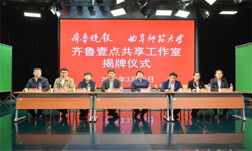 的人才和专业优势为齐鲁晚报的发展把脉,期待更多的鲜活力量参与到新媒体发展大潮中来。随后,张宏磊与李兴保共同为齐鲁晚报-曲阜师范大学齐鲁壹点融媒体共享工作室揭牌。
