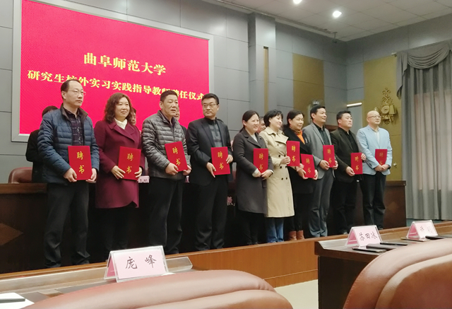 研究生校外实习实践指导教师聘任仪式在日照广播电视台二楼电视会议室举行,日照广播电视台的10名一线工作骨干被聘为指导教师。日照广播电视台台长孙正武、总编辑牟敦波、副总编辑李康和学院党委书记李兴保、院长胡凡刚等领导同志出席仪式并为首批指导教师颁发聘书。