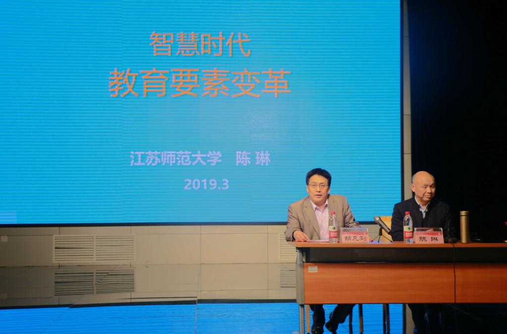 报告会上,陈琳教授围绕着人类正快步进入智慧新时代、新时代教育要素的变革新方向、智慧新时代的教育技术发展三个方面展开论述。陈琳通过播放视频片段、引述陶行知对知行创关系的探讨等方式,引出教育应遵循“知行创合一”的思想,指出学生在创新中获得“高峰体验”的重要性。陈教授强调,教师应该随着教育对象和知识教育的改变而改变,争做“智慧教师”,更好的适应智慧时代的发展。报告会结束后,胡凡刚对报告会进行总结,并对教育技术学学生和教师提出殷切期望。陈琳为我院学生及教师提出的问题进行了详细的解答。