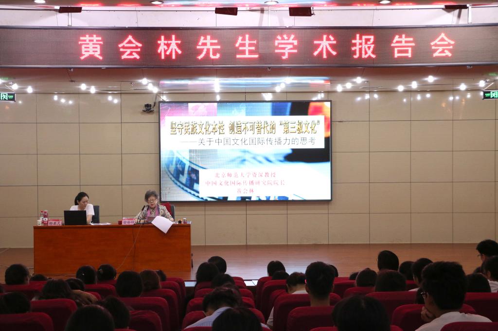 报告中,黄会林先生以《坚守民族文化,创造不可替代的“第三极文化”》为题,从三个角度全面展示了我国文化发展现状和“第三极文化”的发展趋势。她对“第三极文化”的特征和内涵作了分层阐述,提出提高国民文化自觉意识的关切,指出当代年轻学子的历史使命,并从学术研究、艺术创作、文化传播、资源整合四个方面,详细论述“第三极文化”目标的实现路径。报告会开阔了传媒领域文化研究的视野,给我校传媒相关专业的研究与实践带来了极大的启发。