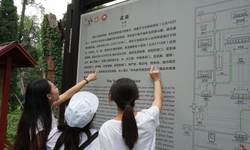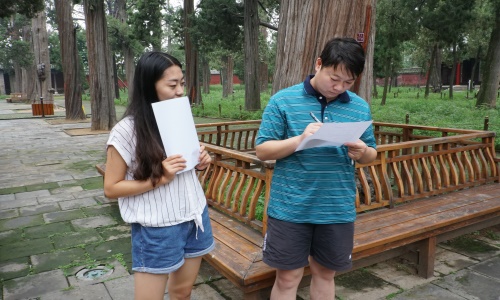 队员先来到孟庙,作为孟子后人祭祀孟子的地方,孟庙庄重,安宁,历史感、文化感浓厚。队员们选择了浏览古迹与问卷采访相结合的方式,从古迹中了解孟子的文化,又通过问卷采访游客,当地居民,工作人员,问卷内容主要涉及人们对孟子文化的了解程度,人们对文化保护的关注,孟子文化对当地人生活和为人处世潜移默化的影响等。随后队员们在孟庙家属区进行调研,并有幸采访到一位孟子后人,队员们细心聆听老人的讲述,对孟子文化有了更进一步的了解。最后来到孟府,队员们分头行动,对孟府的游客进行了采访,了解游客对孟子文化的认知程度。