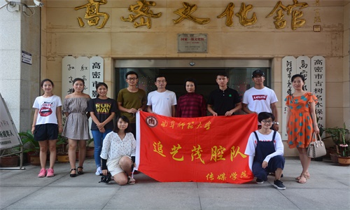 “追艺茂腔”暑期社会实践小队前往高密市文化馆调研,高密市文化广电新闻出版局党委书记魏老师,国家一级演员、茂腔大家孙红菊女士接受了小队成员关于茂腔剧种相关问题的采访。