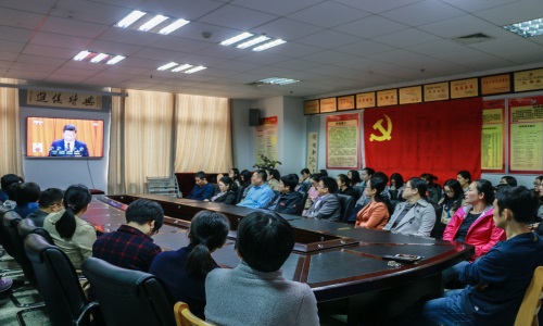 1018日上午9时,中国共产党第十九次全国代表大会在人民大会堂开幕。为积极响应学校党支部的号召,深入贯彻习近平总书记的指导方针,足球在线直播 于上午9:00JC813组织观看十九大开幕会。足球在线直播 党委书记李兴保、院长胡凡刚、党委副书记徐正伟及教工党支部、研究生党支部、本科生党支部的党员、入党积极分子参加了本次活动。