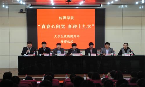 随后,胡凡刚宣读了以“‘学习十九大精神’系列活动、宿舍文化艺术节、班级文化艺术节、学风建设月、科技影视文化艺术节、安全百日行、社团活动月、阳光体育活动月、班级内涵式管理月、大学生素质提升年活动总结大会”十大版块为内容的素质提升年活动方案。