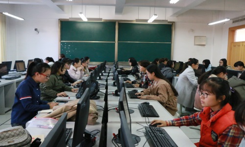 与此同时,平面设计实验技能大赛也在JF303、312、313三个机房展开。本次比赛的主题为演示文稿的设计,包括PPT主页