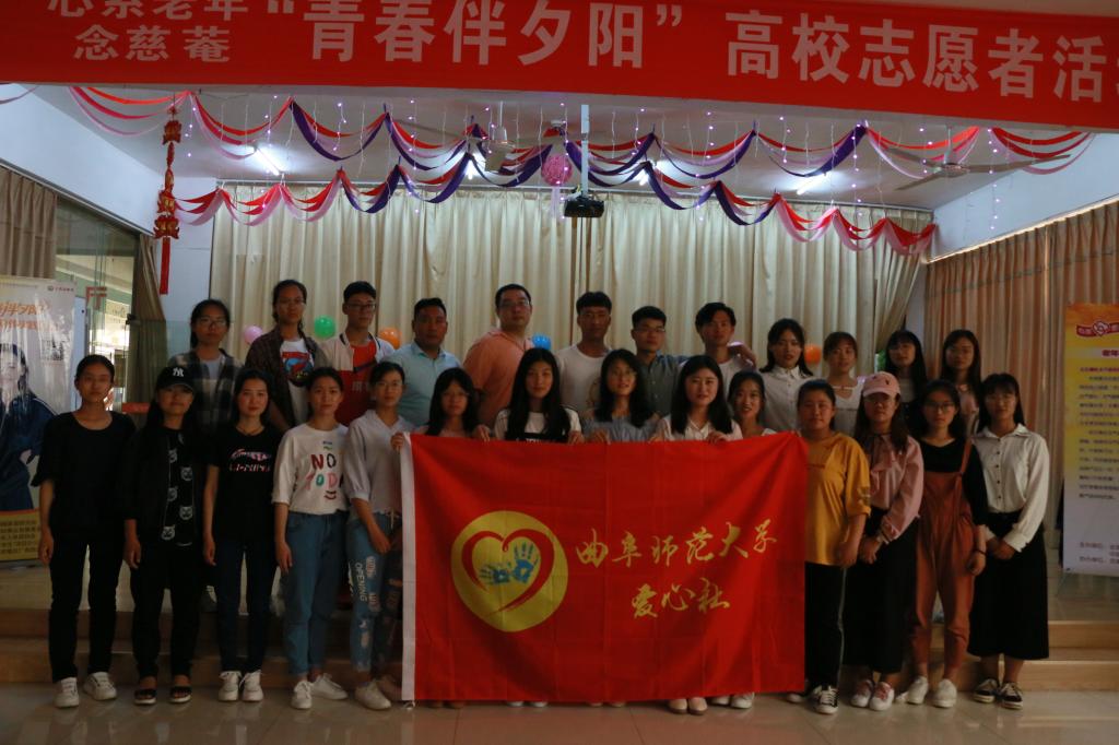 为了培养当代大学生的社会实践能力和社会公德意识,弘扬中华民族敬老爱老的传统美德。5月29日,由曲阜师范大学爱心社举办的“青春伴夕阳”系列活动在日照市中盛幸福苑顺利举办。曲阜师范大学爱心社志愿者前去进行志愿服务。