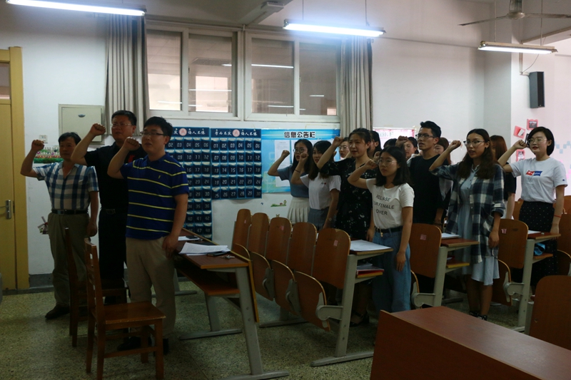 会议伊始,各申请人分别宣读自己的入党志愿书,表达出对党的崇敬与入党愿望,阐述个人的入党动机,并向党组织汇报个人表现。接着,入党介绍人介绍申请人基本情况,阐明自己的意见,同时宣读申请人的综合政审情况,并由申请人进行表态。随后,李兴宣读相关决议。根据几位申请人的一贯表现和党组织的培养情况,经学生党支部全体正式党员投票表决,一致同意接收李艺等11位同学为中国共产党预备党员。最后,预备党员面向党旗庄严宣誓,表明对党的忠心和发挥模范带头作用的决心。
