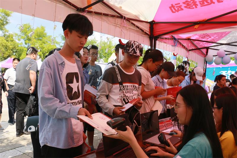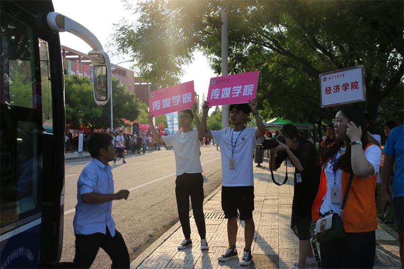院牌迎接新生,保证新生在下车后便能够快速的找到报到处。今年实行的“学长制”在帮助新生快速适应大学生活的同时,更推动了入学报到工作的顺利开展。