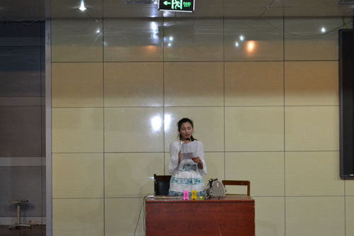 的新生们展现出了积极的态度。新生在微凉的夜色下仍然保持着良好的秩序。倪明晓一句一句带领大家学习校歌,最终全部学会。