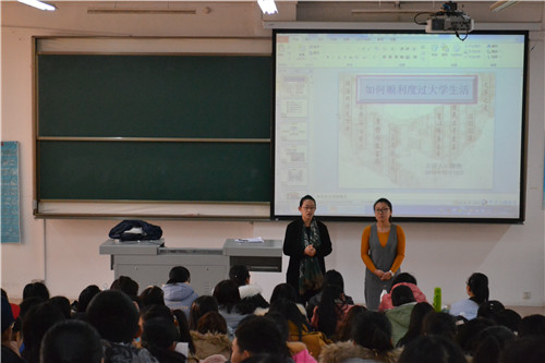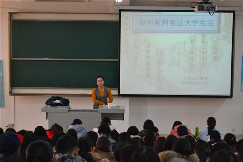 培训伊始,滕艳表示这次交流活动,主要从五个方面谈起:认识大学生活;大学生活的改变、适应;大学生活准备怎样度过;思考我们的将来以及给大家的建议。