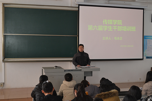 党总支副书记、2014级政治辅导员肖龙航开场,美术学院党总支副书记毛永正担任主讲人,2015级学生干部参与本次培训。