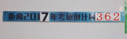 JA104教室的公告栏上就贴出了距离2017年考研362天的倒计时。此考研倒计时卡牌是学生会学习部为应届考研学子贴心特设的。学习部部长曲媛惠说道:“学院向来重视考研人才的培养,所以考研倒计时牌也是学习部的常规工作之一。早早的贴上2017年的考研倒计时也是为了趁热打铁,为同学们营造浓郁的备考氛围,激励下一届的考研学子,积极备考。”虽然2016年的考研刚刚结束,但是传媒学子的考研热情并没有消退。一大早,2017年的考研应考生便来到教室进行复习。“想想自己的梦想就有动力,看看身边一起奋斗的研友就有激情!”