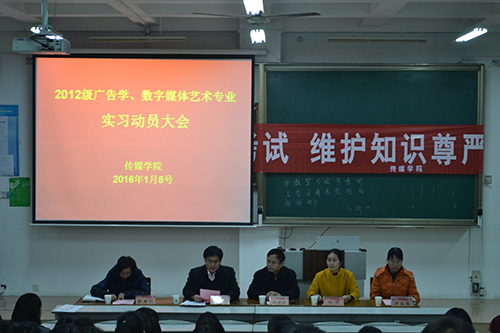院长马秀峰、副院长胡凡刚、2012级政治辅导员张守荣、数字媒体系主任李秀霞、新闻传播系主任卢长春及就业实习的指导老师出席本次会议,2012级广告和学数字媒体艺术专业的学生参加会议。