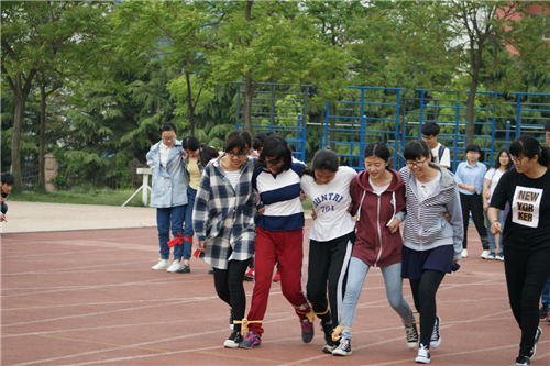 活动开始,首先进行的是“团体跳绳”,由各班负责人抽取比赛顺序,每个班在比赛前都有一分钟的准备时间,裁判吹哨时比赛开始,在一分钟的时间里跳的次数最多的班级获胜。这个比赛看似简单,其实不然,有的班级只跳了几个,总是协调不起来;而有的班级掌握了要领,连着跳了几十个,很是顺利。这可以看出团体的比赛项目考验的是同学们的团结合作和协调能力,只有大家都团结一心,劲往一块使,才能在比赛中取得优异的成绩。第二个比赛项目是“结队而行”,这是最考验队友们之间的信任和协调能力的比赛。每个班的五名同学,把腿绑在一起,并肩而行,两两为一组进行比赛,行走30米用时最少的队伍获得胜利,各班队伍团结一致,喊着口号向前迈进。每个运动员都沉浸在比赛中,脸上挂着笑容与汗水,在比赛中体会到了快乐。