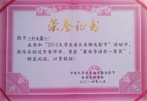 本次大学生“萤火虫”微电影节是由山东省旅游行业协会、山东省电影家协会、临沂市人民政府共同主办,面向全国在校大学生的大型微电影节。微电影节共设最佳导演奖、最佳作品奖、最佳剧本奖、最佳男女演员奖等奖项。我院拍摄的微电影《红与蓝》在众多作品中脱颖而出,荣获“最佳导演奖一等奖”。影片中讲述了生活在某城市的电台播音主持人欲服药自杀,但被一个在海上遇难却极力求生的大叔所触动,放弃了自杀的念头。整部影片带给人们的是乐观向上、珍惜生命、永不放弃的生活态度。影片导演解瞾昕表示,感谢所有参与拍摄的人员,在拍摄过程中每个人都付出了自己最大的心血,虽然特别辛苦,但是所有的人都坚持了下来。