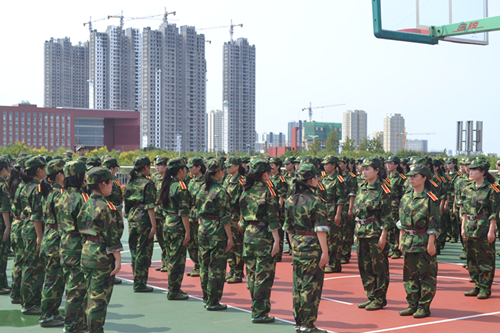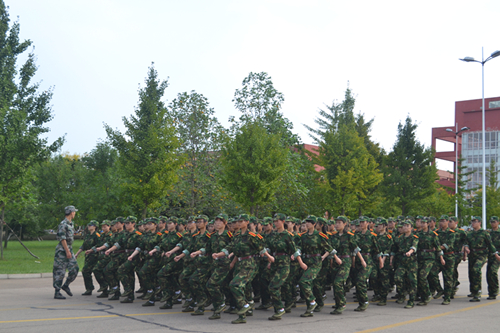 为提高同学们训练的效率,使同学们更好的融入到训练当中,学院对军训的项目进行了详尽的安排。早上6:00—7:00,学生宿舍统一进行内务整理。8:00起,新生们进行军姿、敬礼、报数、齐步走等项目的训练。在部队教官亲切的关怀和严格训练下,在短短的一天时间里,军姿、立正、齐步行进与停止等预定训练科目已初见成效。教官手把手教,学生认真的学。高温酷暑给军训工作带来困难,有的学生病倒了,凭借着顽强的意志,稍有好转便坚持训练;有的学生带病仍在坚持训练。当间息哨吹响,轻松欢快的时刻到来。嘹亮的合唱放松了同学疲惫的身体,个人的表演展现着同学的多才多艺,简单的游戏增进了同学的情谊,笑容洋溢在每个青涩的脸上。