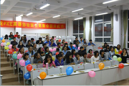 PKE英语协会在JA103举行了新生见面会。王润琦、赵绪建担任主持人,该协会会长周颖,副会长王润琦及各部部长参加了本次见面会。