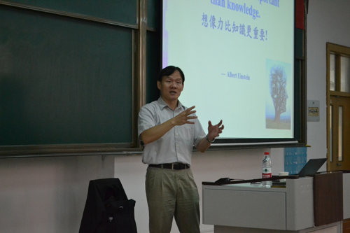 本次报告会的主题是“台湾资讯教育现状及游戏式学习研究”。陈教授把整个报告分为两部分,第一,台湾中小学信息技术现状。他为同学们详细地介绍了台湾的九年一贯课程和资讯教育以及网际网络的认识和使用;第二,陈教授自己的研究成果——游戏式数位学习研究。同时,陈教授也指出台湾资讯教育的弊端,即学生容易上网成瘾。陈教授的研究以学生为中心,他解释:教育只有以有教无类、因材施教、寓教于乐为目标,才能更好发展。随后,陈教授由美国教育进一步提出未来的资讯教育事业应该越来越微型化、行动化更具有主动性与乐趣,运用合作学习及社群互动来适性发展。教育范式应转移至线上学习、混合学习和合作学习。