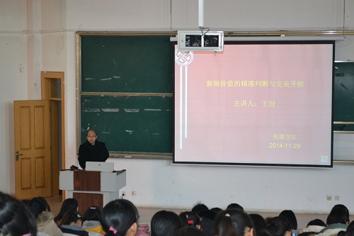 第四届新闻写作培训班第五讲在JE101室举行,齐鲁晚报日照站副站长王封受邀担任主讲。讲座开始之前我院党总支副书记,2014级政治辅导员肖龙航发表讲话,鼓励同学们利用好本次讲座为大家提供的学习契机,学为所用,为将来更好的发展奠定基础。 随后,王封围绕“全媒体时代记者的修炼,合格记者必备的素养”开始本次培训。王封首先介绍了齐鲁晚报的版面及其特色栏目,并以“拒做手机奴”话题为契机,呼吁同学们积极阅读纸质媒体,积极投稿写文章。随后,王封指出全媒体时代改变了人们的生活及阅读习惯,但并未改变新闻报导的本质使命,并就目前传统的纸媒危机提出了自己的见解,他说:报业危机,危中有机,高品质的内容是核心竞争力的灵魂。王封就一个合格记者的必备素养提出了几点具体要求:学习广泛涉猎;保持政治敏感度;大胆提问、重视言论;精益求精。最后,王封与同学们进行热烈的互动,在与同学们的交流中他说自己对于媒体行业,因为喜欢,所以坚持,全媒体时代不能改变新闻的本质与原则。 至上午12:00,足球在线直播