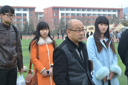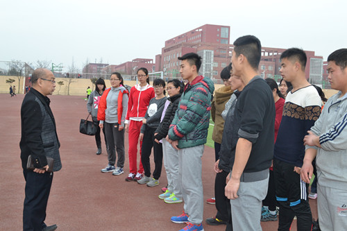 党总支副书记、2014级政治辅导员肖龙航带领学院团总支学生会相关部委学生干部到我校西操场走访运动员训练情况。
