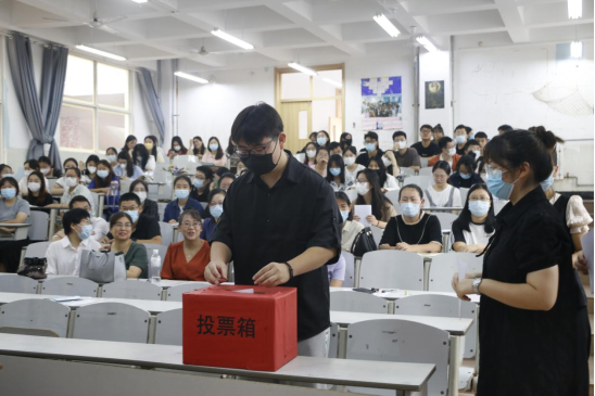 大会严格按照党章及校党委关于做好代表选举工作的要求进行。首先,王宏杰宣读了《中国共产党曲阜师范大学委员会关于第九次代表大会代表选举工作的通知》,并介绍了我院参选代表的名额、条件、产生方法和程序以及出席本次党代会代表候选人预备人选的相关情况。大会以举手表决的方式通过了选举办法,推举刘扬帆担任监票人,张乐康、刘一辰担任计票人。经过全体与会正式党员的不记名差额投票选举产生了我院出席曲阜师范大学第九次党代表大会的7位代表。