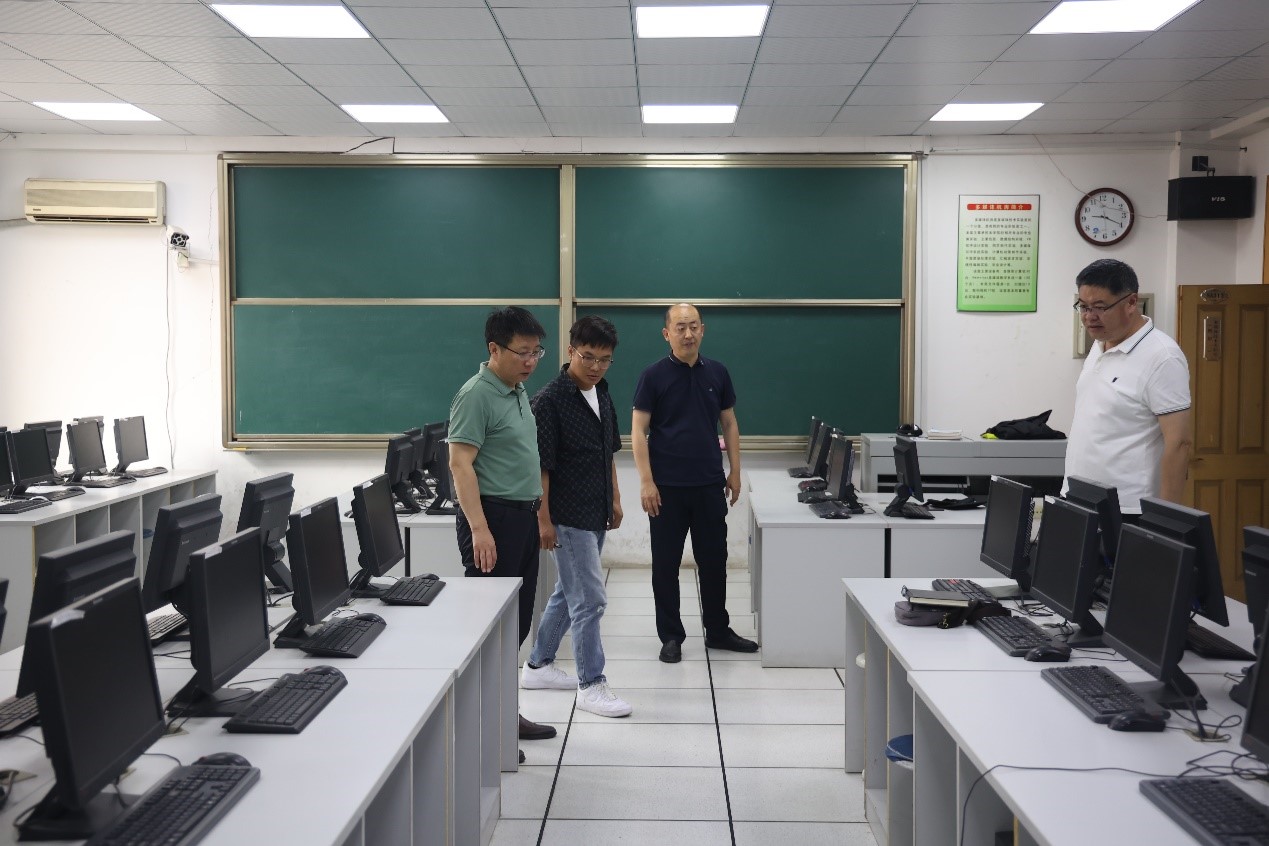 各实验室、机房,重点检查实验室环境和相关设施的使用情况,现场听取实验室安全管理负责人汇报安全隐患排查工作的开展情况、实验室设备的使用情况,并对相关工作提出了明确要求,指出应当定期维护机房设备,检查安全隐患,做好实验室安全防范工作。在调研过程中,学院领导对实验室设备数目、电源电路、安全通道建设等方面进行风险排查,同时查看新设备的使用情况,对实验室安全管理和教学工作提出了建议。
