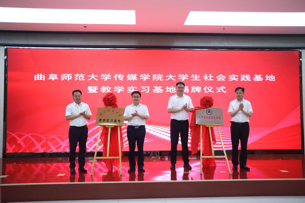 王焕景与济阳区融媒体中心、教育与体育局相关负责人签订共建实践基地协议。胡凡刚和张鹏为教学实习基地揭牌,王宏杰与邓洪刚为大学生社会实践基地揭牌。