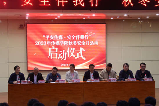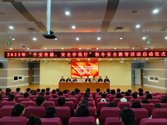 在图书馆报告厅举行2023年“平安传媒•安全伴我行”秋冬安全月活动启动仪式。日照市中心医院产科主任杨灵、曲阜师范大学日照校区保卫处副处长王光江、后勤管理处副处长王睿、学生工作处副处长曲涛、足球在线直播