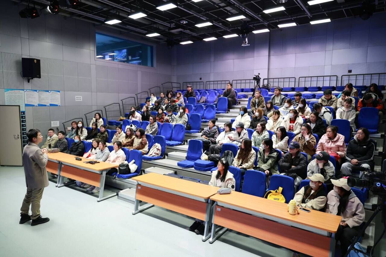 新闻传播系系主任孙浩担任主持。学院部分新闻学学生参与讲座。