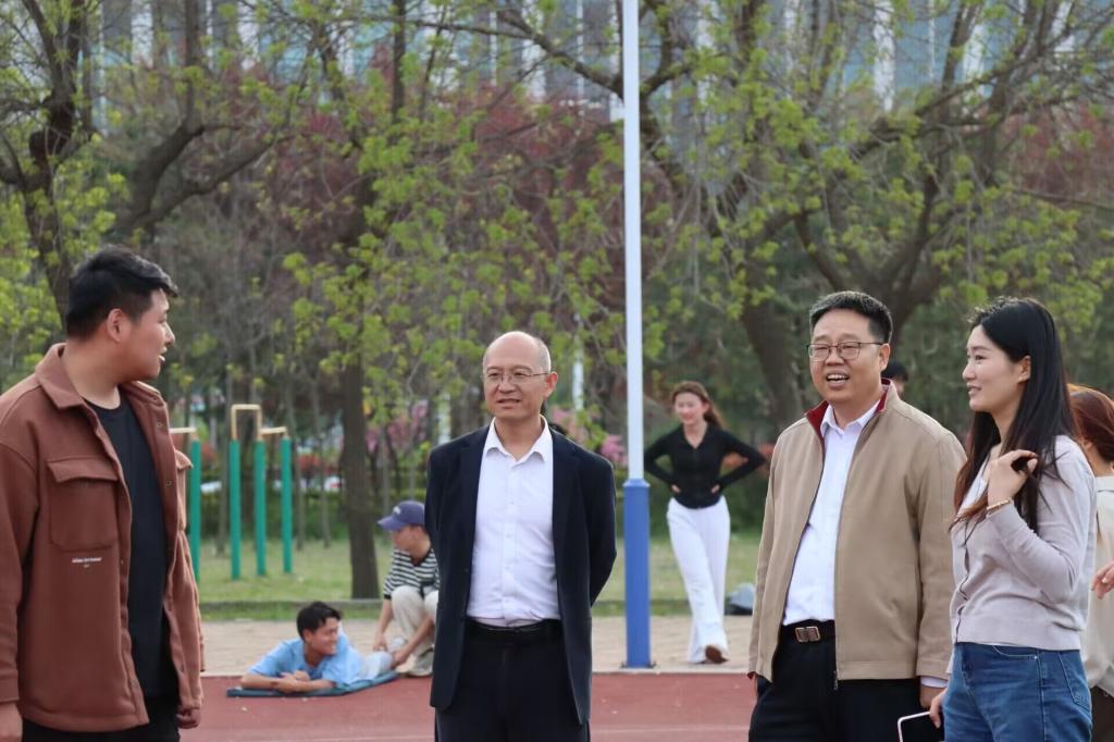 党委书记田维柱、党委副书记田荣林来到西操场看望慰问春训学生。