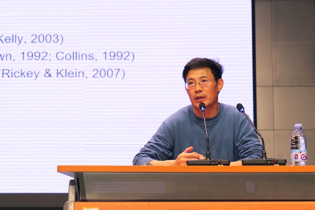 王其云教授阐述了教育设计研究的定义和重要性。他指出,教育设计研究通过系统的设计和实验过程,旨在解决教育领域的实际问题,并提出创新的解决方案。这种方法不仅有助于推动教育科学的进步,还能为教育实践提供有力的支持。同时强调教育设计研究需要注重实践性和迭代性,通过不断的试错和优化,最终找到有效的解决方案。另外,王其云教授还分享了一些实用的研究方法和技巧,帮助研究者更好地掌握教育设计研究的精髓。最后,在互动环节中师生纷纷踊跃表达自己的观点和疑问,王其云教授进行逐一解答,现场气氛热烈而融洽。