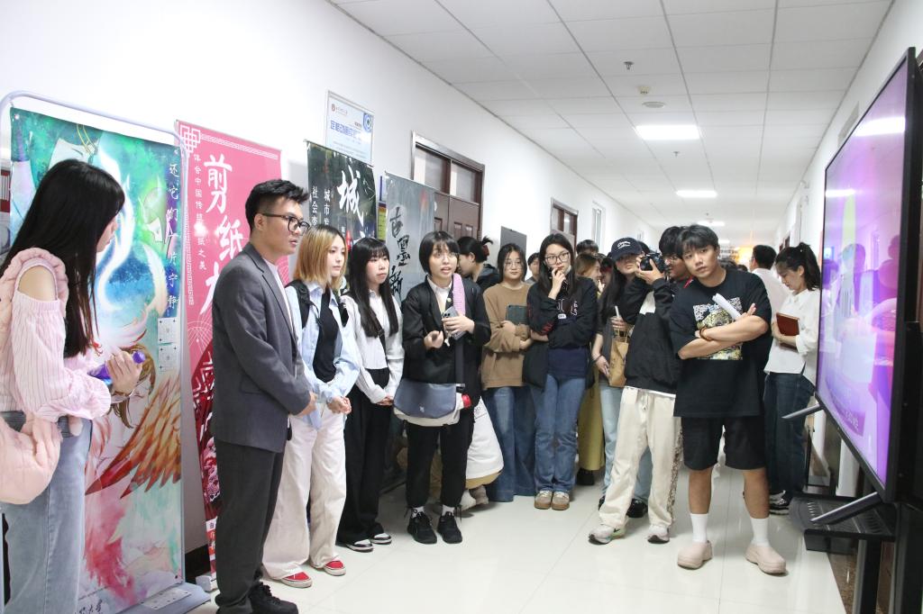 展览现场,观众络绎不绝,纷纷驻足欣赏这些充满创意和活力的作品。来自两岸的教师和学生们在欣赏作品的同时,也进行了深入的交流和讨论。曲阜师范大学数字媒体艺术专业的作品注重技术与内容的结合,追求作品的实用性和创新性,如数字插画、虚拟现实、影视动画等,为观众带来了全新的视觉体验。同时,这些作品也融入了丰富的中华优秀传统文化元素,通过艺术的形式展现了中华优秀传统文化的博大精深。