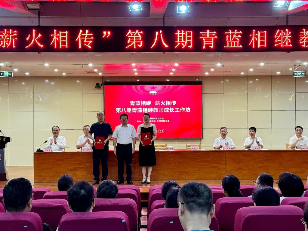 赵可云教授和管理学院徐健腾教授受聘第八批“青年教师成长导师”,纪洪涛为两位成长导师颁发证书。