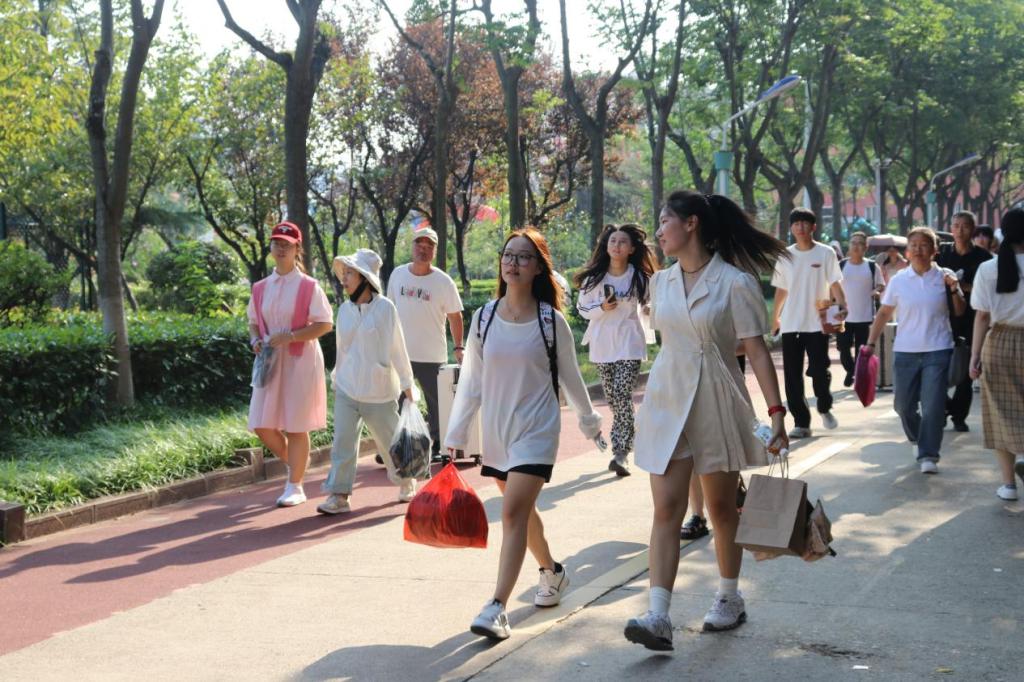 志愿者们还热心地给新生当“导游”,贴心讲解附近地区的标志性建筑,校园和宿舍的分布格局,还有食堂、快递站以及服务中心的位置,帮助新生尽快熟悉生活环境。