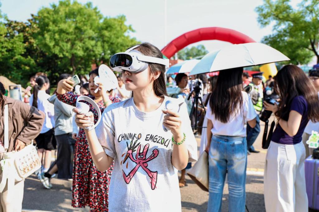 VR体验区为新生提供了各式各样的VR设备,等待着新生们的探索与挑战,也受到了众多新生的驻足参与,新生们亲手操作VR设备,在虚拟世界中亲身体验科技的神奇与魅力,在享受科技乐趣的同时,拓宽视野、增长知识。
