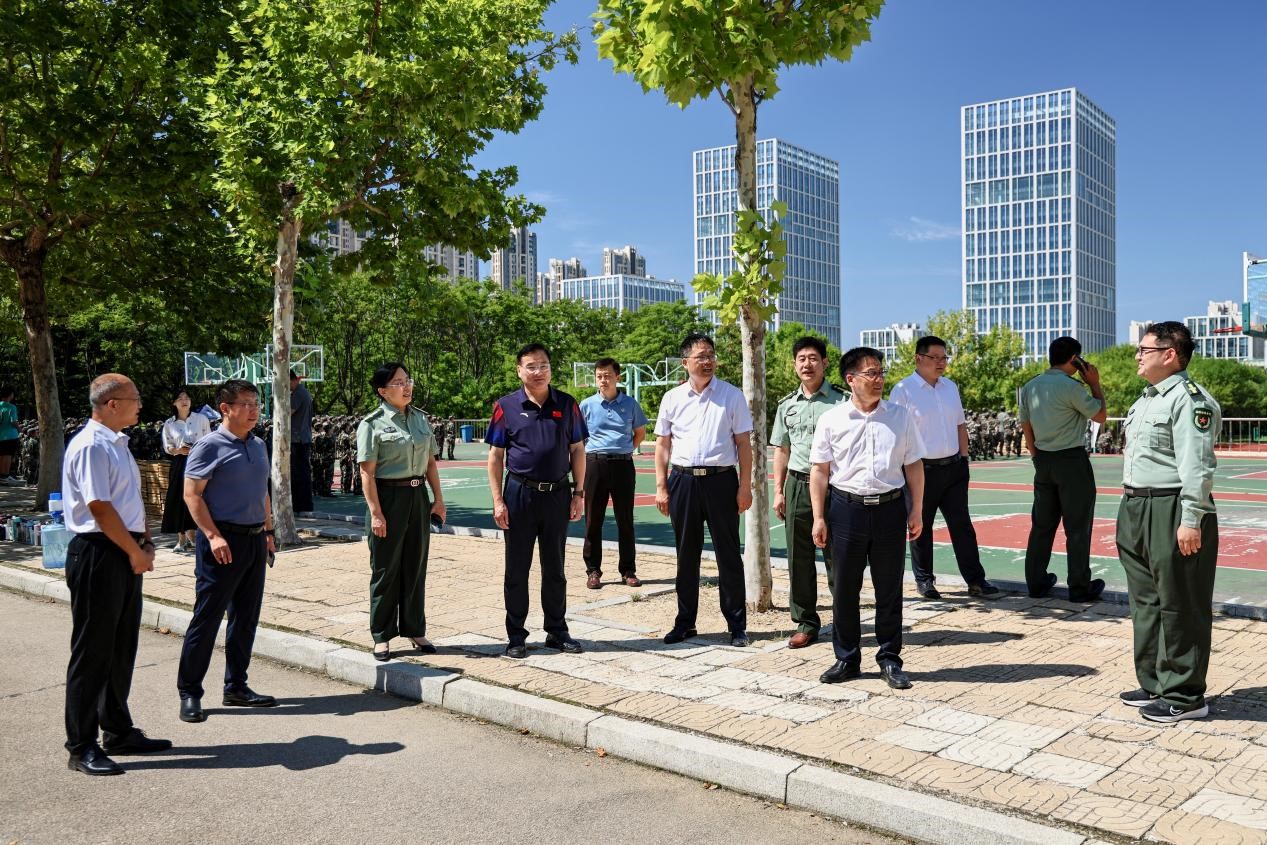领导班子一行深入军训现场,陪同指导。