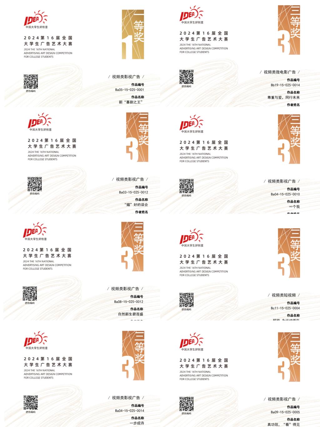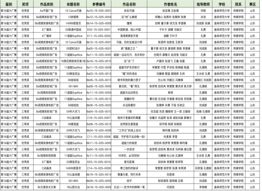 9月9日,第16届全国大学生广告艺术大赛全国总决赛圆满结束。在此次比赛中传媒学子喜报频出、表现亮眼,荣获全国奖29项,其中一等奖1项,三等奖9项,优秀奖19项;在山东赛区评审中,获一等奖4项,二等奖14项,三等奖25项,优秀奖94项。