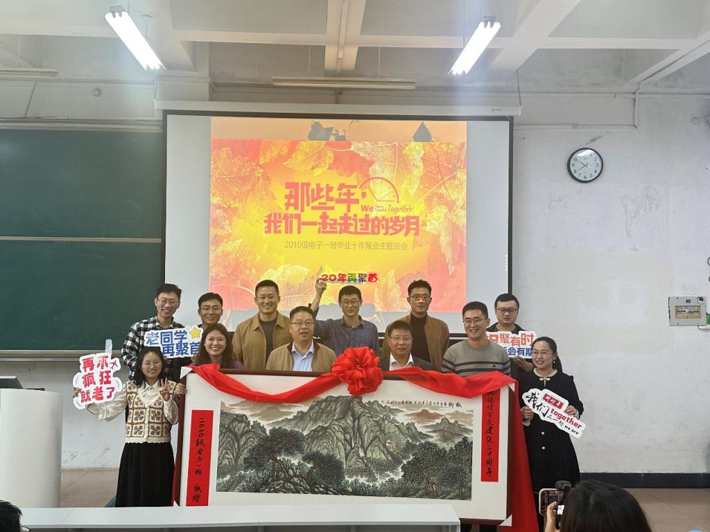 校友们在签到墙上签到打卡,留下了对母校的美好祝愿与期待。毕业聚会召开了以“昨天、今天、明天”为主题的班会,毕业视频和照片仿佛带校友们回到了那段青春岁月。校友们轮流上台自我介绍,分享这十年以来的人生经历与感悟,携手规划未来发展蓝图,表达了对美好时光的无限向往与期许。