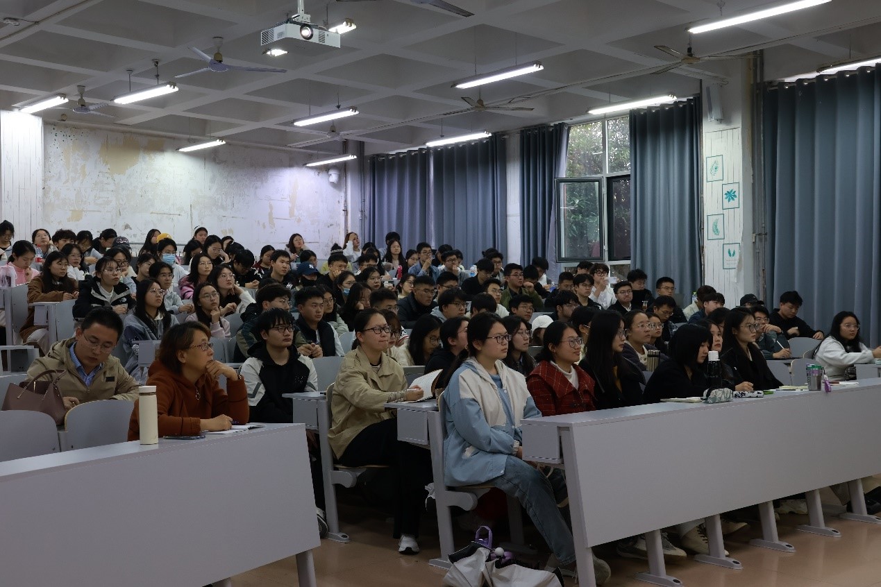 讲师、硕士生导师董同强主讲,辅导员张洪孟老师及部分教师代表参与,2022级、2023级教育技术学专业本科生和相关专业部分研究生参加。