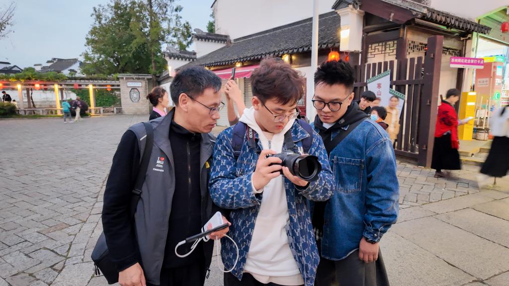 师生一行先后到苏州留园、虎丘、苏州博物馆、拙政园、金鸡湖等地见习。徽派建筑和古典园林为师生提供了丰富的创作素材。在老师的指导下,同学们将理论知识与实践操作紧密结合,从光线运用、色彩搭配到构图技巧践行学以致用,以光影视角展现中华文明、中国艺术、传统文化之美。