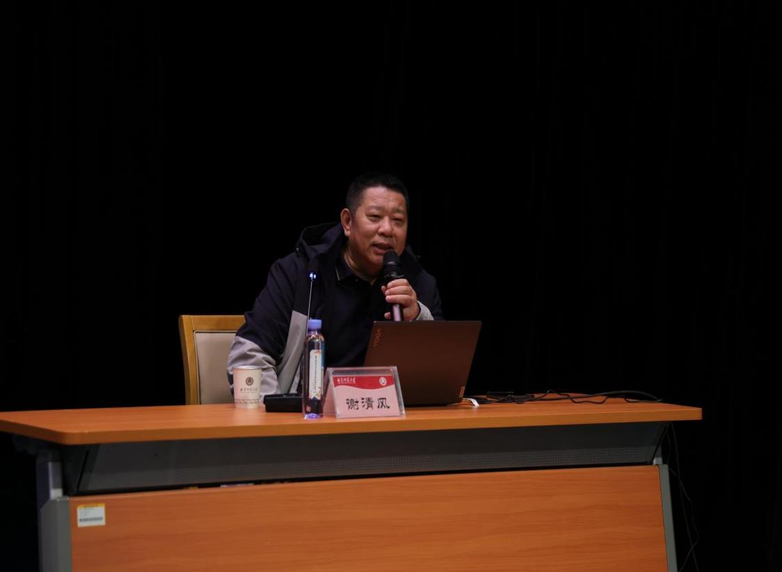本次讲座以《超场域数字创艺的思考—赛教融合实践》为主题,谢清风结合生动的事例,带领师生深入了解了数字创意的内涵与外延,并提出了在数字艺术方面师生努力的方向及要求。他谈到,文明的终点是向心向善,创意作品要全面,要与人类进行心灵的触碰,希望学生们能够形成自己的风格体系,跟上时代的步伐,为社会服务。