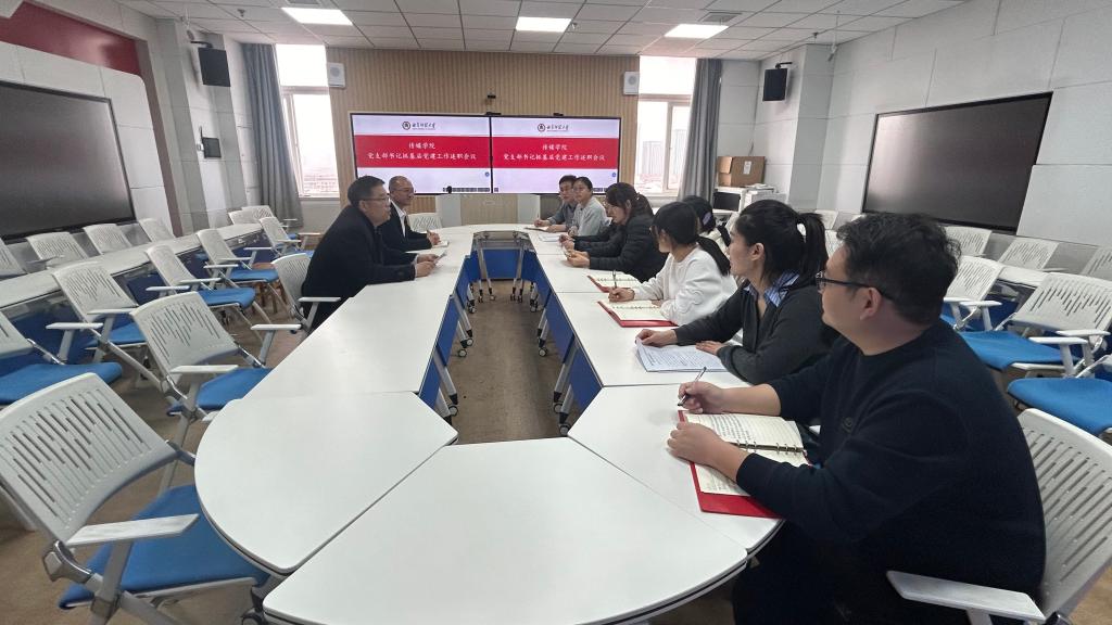 在JC813召开2024年度党支部书记抓基层党建工作述职报告会。学院党委书记田维柱担任点评人,学院党委成员、各党支部书记参加会议。