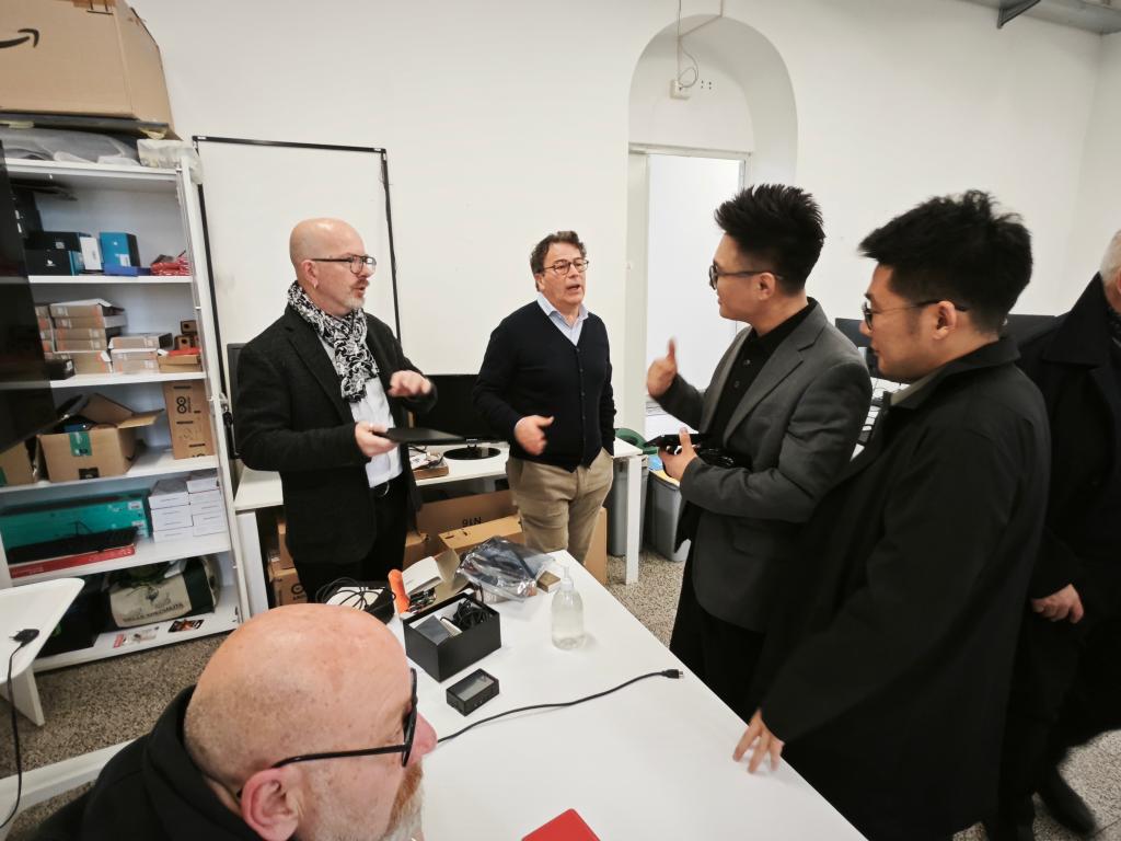 在为期一周的学术交流中,代表团实地考察了弗罗西诺内美术学院数字艺术创新实验室等教学场所,详细考察该校的特色课程教学情况、观摩了部分专业课程。双方围绕“技术赋能传统艺术”教育理念展开学术研讨,并就双学位联合培养方案初步达成共识。弗罗西诺内美术学院院长Mauro Walter Pagnanelli教授特别指出中国在数字艺术领域的创新实践为传统艺术教育提供了全新视角。”