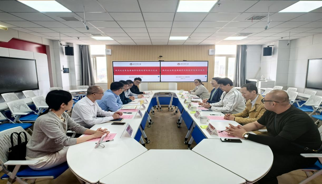 座谈会上,学院领导表达了对青岛黄海学院领导来访的欢迎,并详细介绍了学院发展历史、学科专业架构、办学特色优势和特色学科培育成果,希望进一步深化校校之间的联系和合作,探索资源共享、优势互补的创新发展路径,共同培育新时代优秀传媒人才。青岛黄海学院领导就影视学院学科建设、师资队伍、人才培育成果等相关情况进行了介绍,希望双方以此次座谈为契机,深入开展多层次交流合作,充分发挥各自优势,实现资源共享、共建共赢。双方还就专业建设升级、人才培养模式创新、实习实践基地拓展、学生就业服务优化等议题进行探讨,一致表示,将通过深化产教融合、优化资源配置,搭建校校协同育人平台,着力构建毕业生高质量就业长效机制。