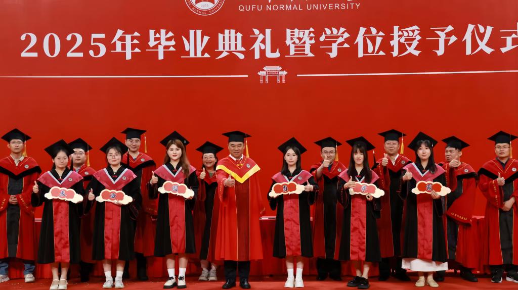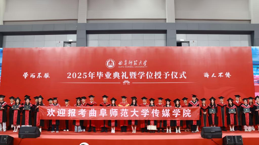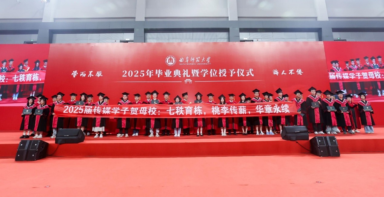 2025年6月21日上午,曲阜师范大学2025届毕业典礼在曲阜校区西区体育馆和日照校区香河体育公园体育馆同步举行。典礼现场庄重而热烈,传媒学子以独特的方式展现了学院风采,为大学生活画上了圆满的句号。