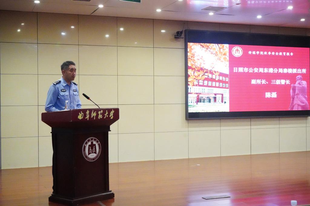 邀请日照市公安局东港分局秦楼派出所副所长陈磊、日照市心脏病医院医师戴启睿于图书馆报告厅为传媒学子作安全教育讲座。日照校区党委副书记刘天浩、保卫处副处长王光江、学生工作处(武装部)副部长赵秀臣、教务处副处长孔峰、足球在线直播